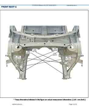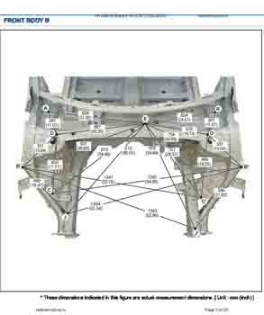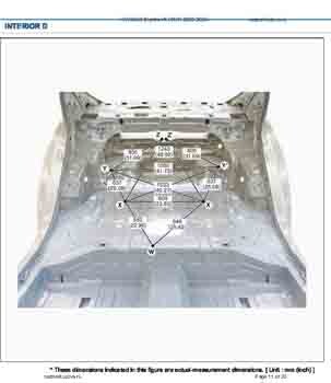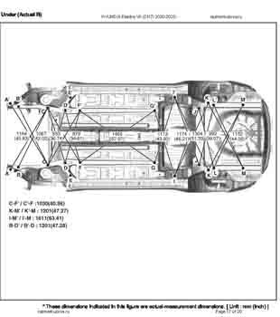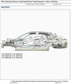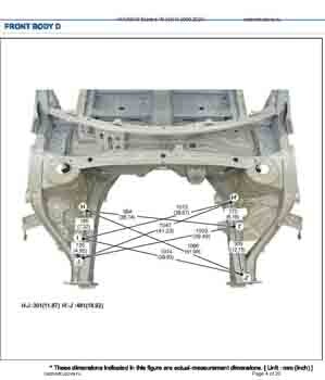 Контрольные размеры кузова для автомобилей HYUNDAI Elantra VII (CN7) 2020-2023-н.в. из заводского руководства по ремонту кузова, в том числе размеры проемов кузова. Дополнительно приведены сведения о допустимых зазорах кузовных панелей. Отдельный файл для модели Elantra N line.