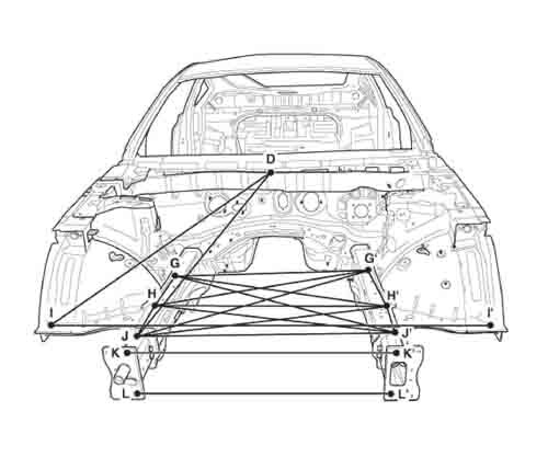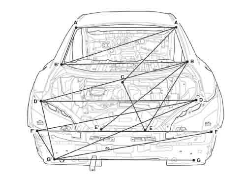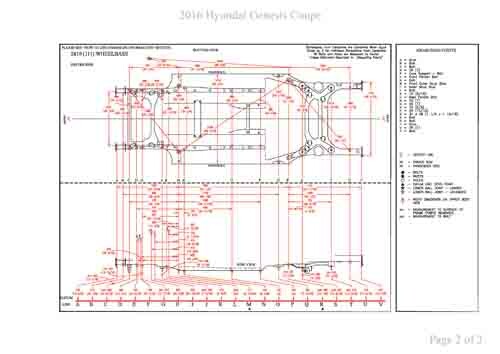 - Геометрические размеры кузова HYUNDAI Genesis Coupe 2012-2016, как проекционные, так и непосредственного измерения, в том числе диагональные размеры проемов кузова и контрольные точки для восстановления геометрии кузова Хендай Купе.