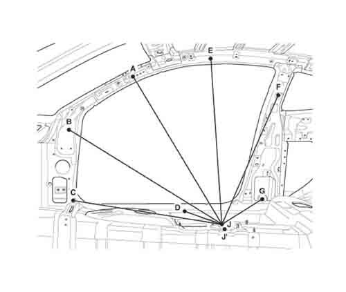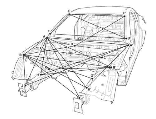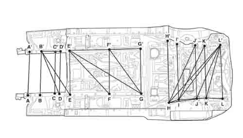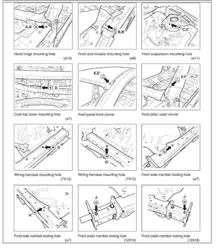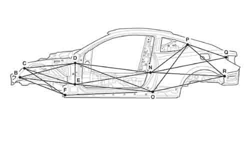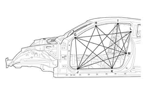 Контрольные размеры кузова для автомобилей HYUNDAI Genesis Coupe (BK) 2012-2016 из заводского руководства по ремонту кузова, в том числе размеры проемов кузова.
