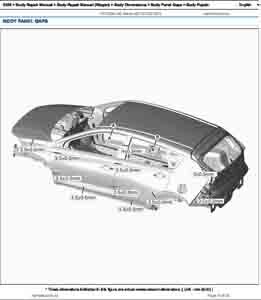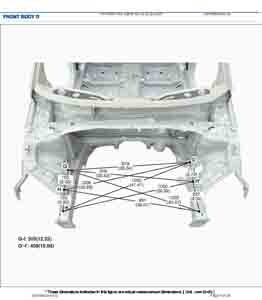 Контрольные размеры кузова для автомобилей HYUNDAI i20, Bayon (BC3) 2020-2025 третьего поколения из заводского руководства по ремонту кузова, в том числе размеры проемов кузова. Дополнительно приведены сведения о допустимых зазорах кузовных панелей.