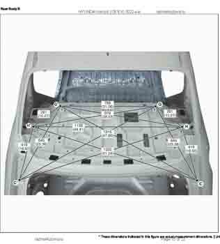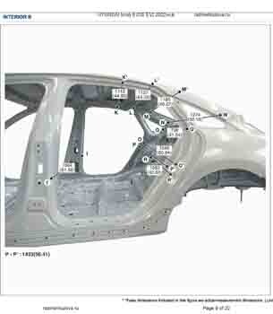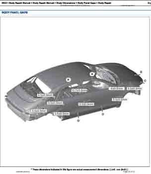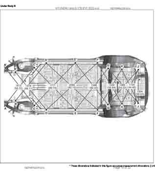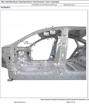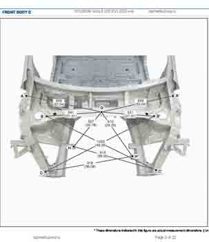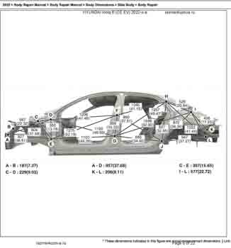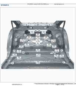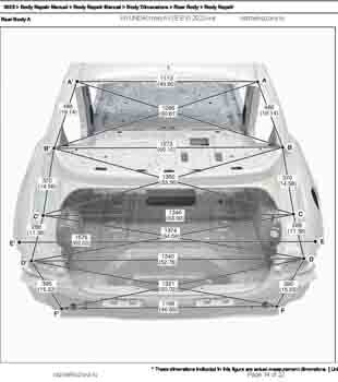 Контрольные размеры кузова для автомобилей HYUNDAI Ioniq 6 (CE EV) 2022-н.в. из заводского руководства по ремонту кузова, в том числе размеры проемов кузова. Дополнительно приведены сведения о допустимых зазорах кузовных панелей.