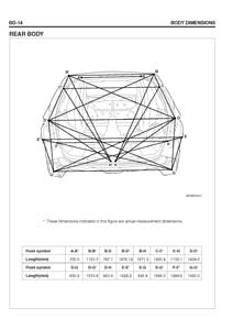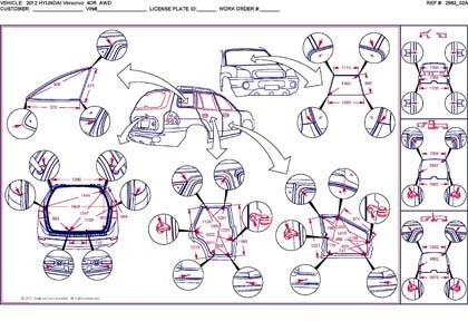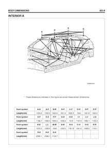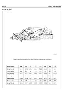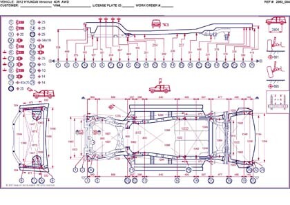 - Геометрические размеры кузова HYUNDAI Veracruz для автомобилей американского рынка, как проекционные, так и непосредственного измерения, в том числе диагональные размеры проемов кузова и контрольные точки для восстановления геометрии.