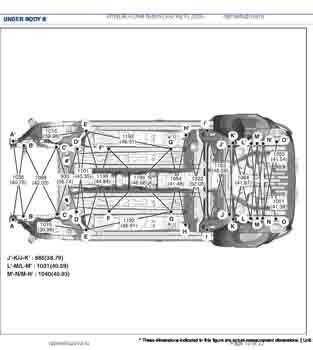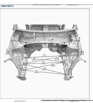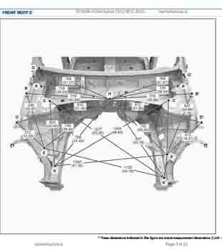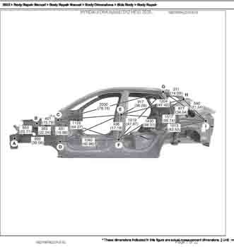 Контрольные размеры кузова для автомобилей HYUNDAI Kona hybrid (SX2 HEV) 2023-- из заводского руководства по ремонту кузова, в том числе размеры проемов кузова. Дополнительно приведены сведения о допустимых зазорах кузовных панелей.