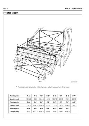 - Из заводского руководства по ремонту кузова HYUNDAI Santa Fe, в том числе диагональные размеры проемов кузова.