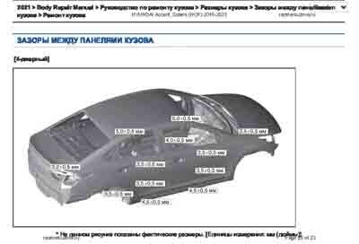 из заводского руководства по ремонту кузова, в том числе размеры проемов кузова. Дополнительно приведены сведения о допустимых зазорах кузовных панелей. C 2024 года модель производится под наименованием Solaris HS.