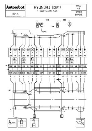 Контрольные кузовные размеры HYUNDAI Sonata 2005-2010: