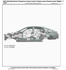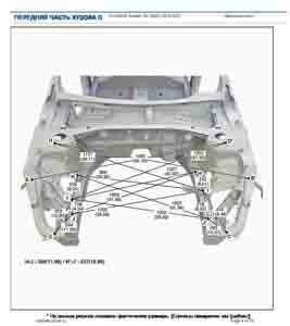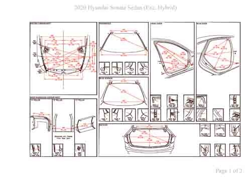 - Геометрические размеры кузова HYUNDAI Sonata VIII (DN8) 2019-2023, как проекционные, так и непосредственного измерения, в том числе диагональные размеры проемов кузова и контрольные точки для восстановления геометрии кузова.