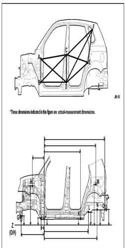 - Из заводского руководства по ремонту кузова, в том числе диагональные размеры проемов кузова.