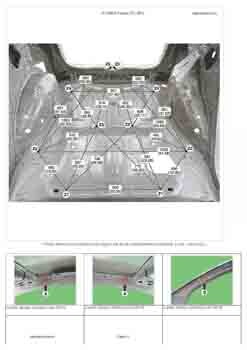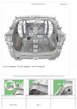 Контрольные размеры кузова для автомобилей HYUNDAI Tucson III (TL) 2015-2018 из заводского руководства по ремонту кузова, в том числе размеры проемов кузова. Дополнительно приведены сведения о допустимых зазорах кузовных панелей.