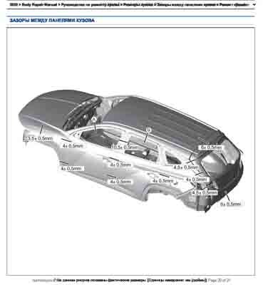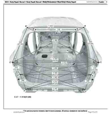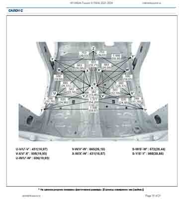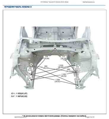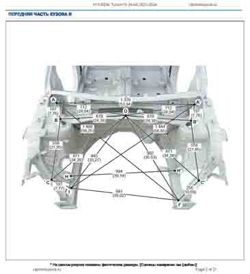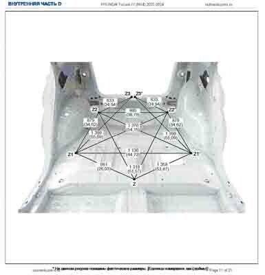 Контрольные размеры кузова для автомобилей HYUNDAI Tucson IV (NX4) 2021-- из заводского руководства по ремонту кузова, в том числе размеры проемов кузова и контрольные точки для восстановления геометрии кузова Хендай Туксон, Хендэ Туссан четвертого поколения. Дополнительно приведены сведения о допустимых зазорах кузовных панелей.