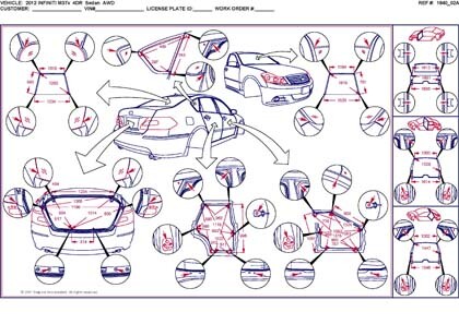 -Полное руководство по кузовному ремонту моделей INFINITI M35, M37,M45, M56. 87 стр. на английском языке, включающее изображения сечений кузова, места резки с способы сварки элементов.