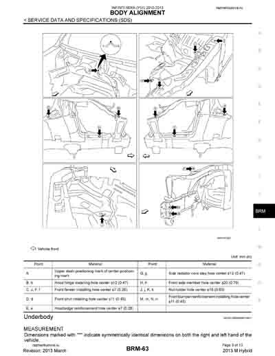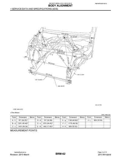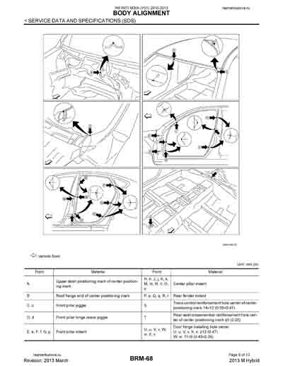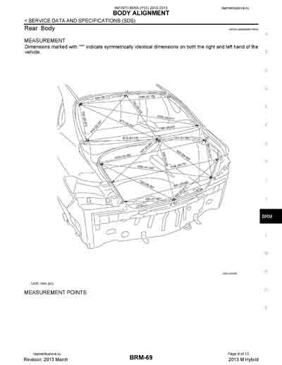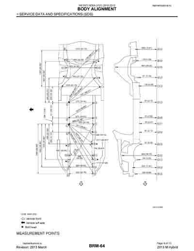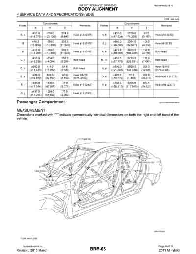 - Из официального руководства по ремонту кузова INFINITI M35h (Y51), в том числе диагональные размеры проемов.