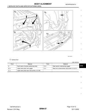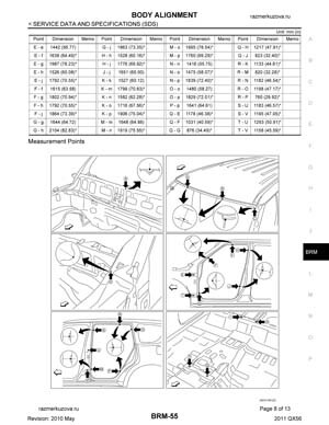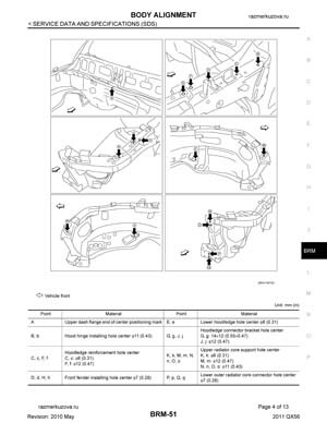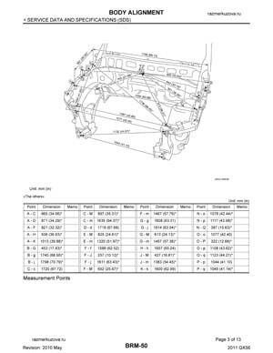 Контрольные кузовные размеры INFINITI QX56 (Z62) 2010–2013: