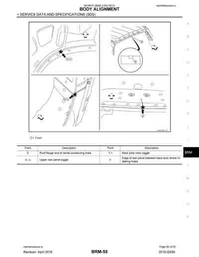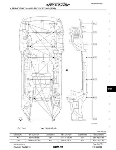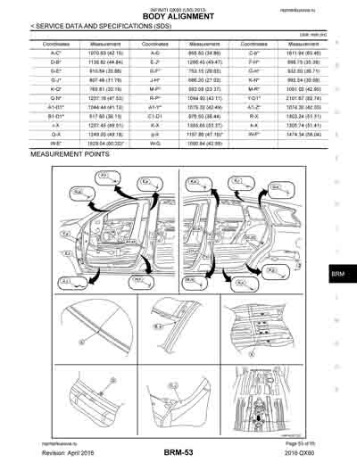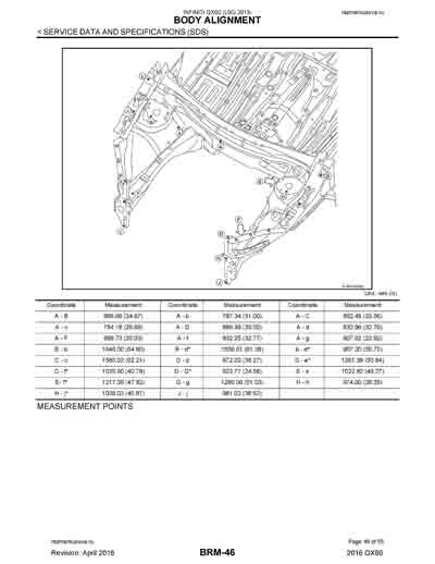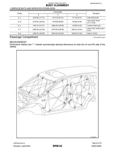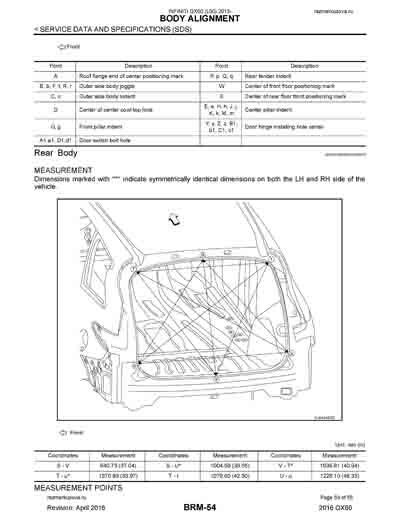 - Из официального руководства по ремонту кузова INFINITI QX60 (L50) 2013-2020, в том числе диагональные размеры проемов.