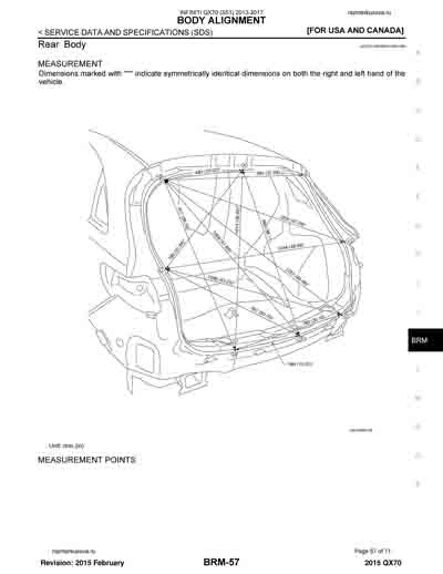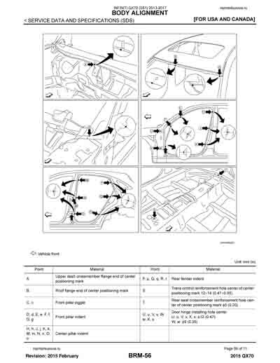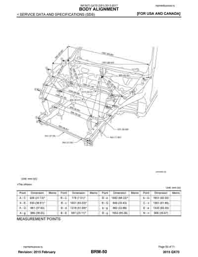 - Из официального руководства по ремонту кузова INFINITI QX70 (S51) 2013-2017, в том числе диагональные размеры проемов.