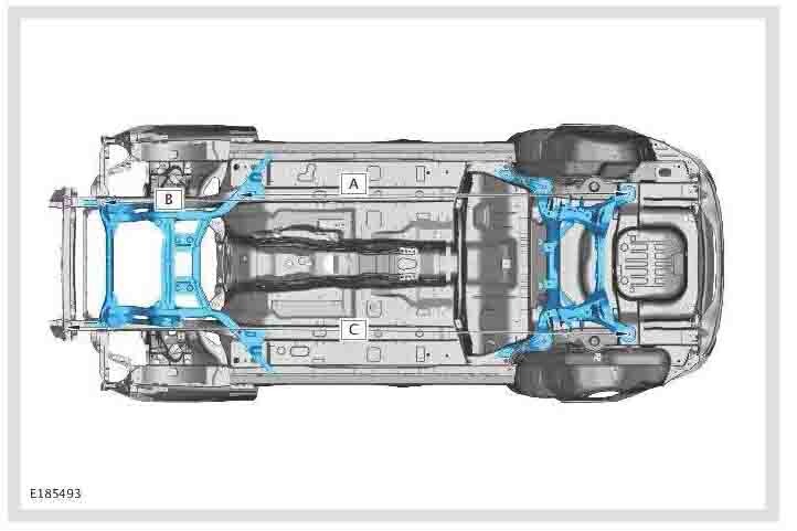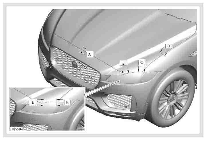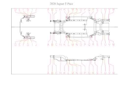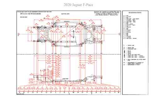 - Геометрические размеры кузова JAGUAR F-Pace (X761) 2016-2020--, как проекционные, так и непосредственного измерения, в том числе диагональные размеры проемов кузова и контрольные точки для восстановления геометрии кузова.