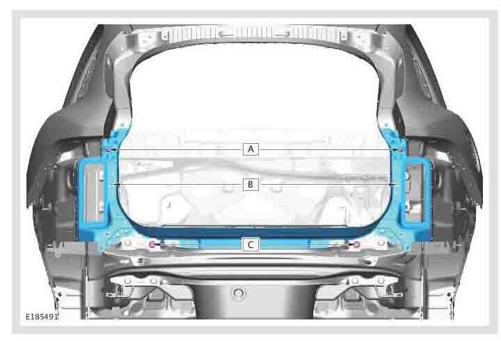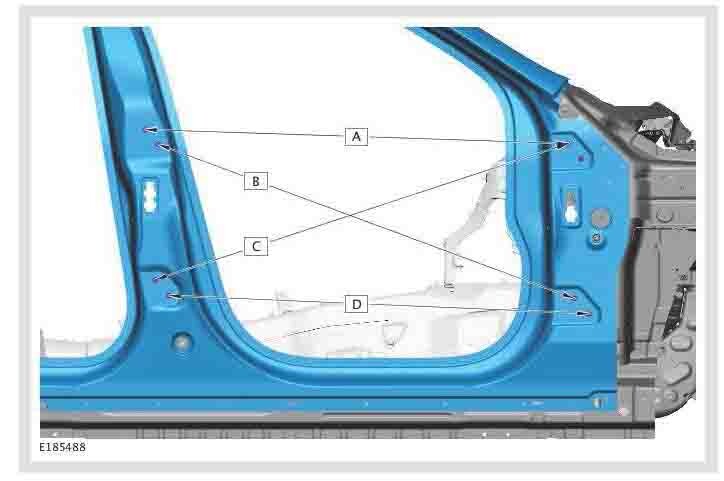 Контрольные кузовные размеры JAGUAR F-Pace (X761) 2016-2020-- из официального руководства по ремонту кузова. В том числе диагональные размеры проемов кузова и контрольные точки для восстановления геометрии кузова. Дополнительно приведены допустимые значения зазоров кузовных панелей.