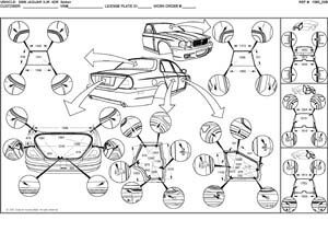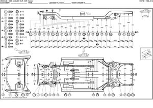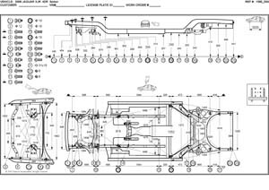 - Геометрические размеры кузова JAGUAR XJ 2003-2009, как проекционные, так и непосредственного измерения, в том числе диагональные размеры проемов кузова и контрольные точки для восстановления геометрии.