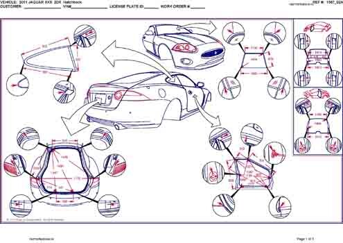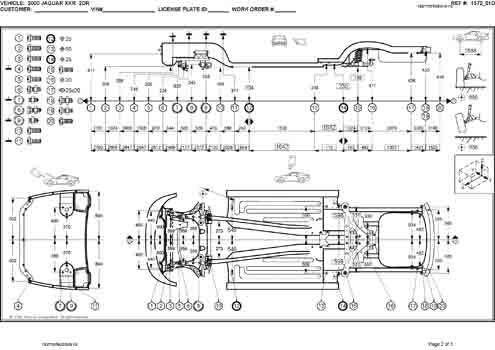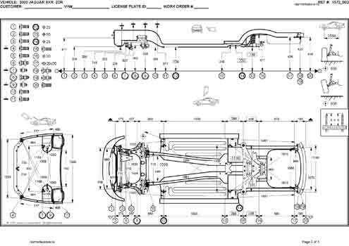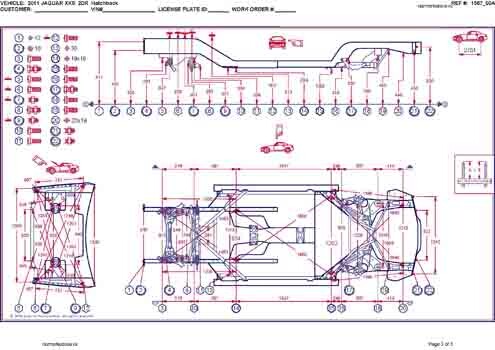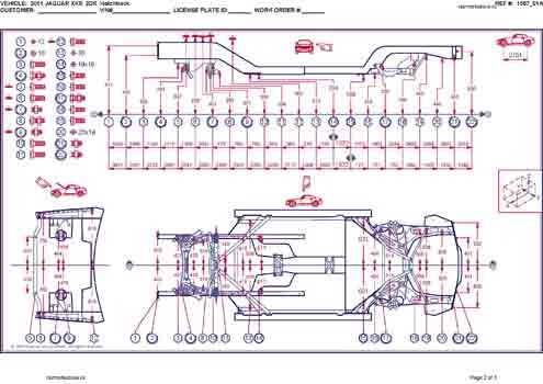 - Геометрические размеры кузова JAGUAR XK (X150) 2006-2014, как проекционные, так и непосредственного измерения, в том числе диагональные размеры проемов кузова и контрольные точки для восстановления геометрии кузова.