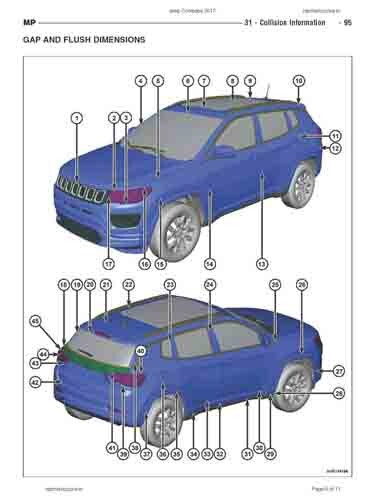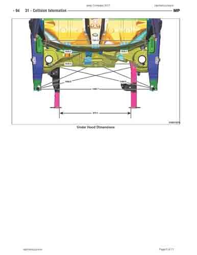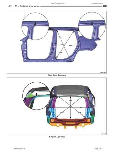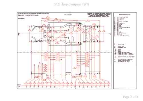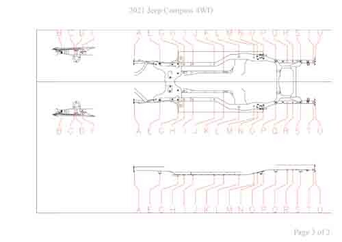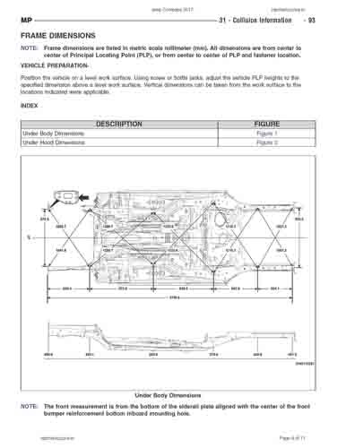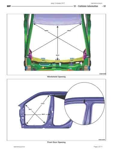 - Геометрические размеры кузова JEEP Compass (MP) 2016-2025, как проекционные, так и непосредственного измерения, в том числе диагональные размеры проемов кузова и контрольные точки для восстановления геометрии кузова.