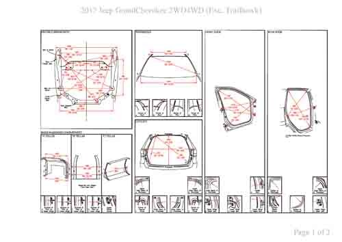 - Геометрические размеры кузова JEEP Grand Cherokee (WK2) 2016-2021, как проекционные, так и непосредственного измерения, в том числе диагональные размеры проемов кузова и контрольные точки для восстановления геометрии кузова.