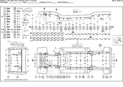 Контрольные кузовные размеры JEEP Grand Cherokee (ZJ) 1993-1998: