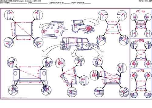 - Геометрические размеры кузова JEEP Wrangler (JK) 2007-2018, как проекционные, так и непосредственного измерения, в том числе диагональные размеры проемов.