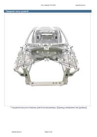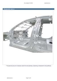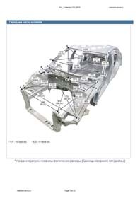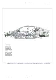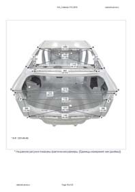 - Из заводского руководства по ремонту кузова Body Repair Manual, в том числе диагональные размеры проемов кузова и контрольные точки для восстановления геометрии КИА Каденза. Дополнительно приведены допустимые значения зазоров кузовных панелей.