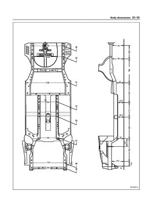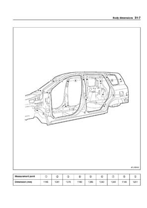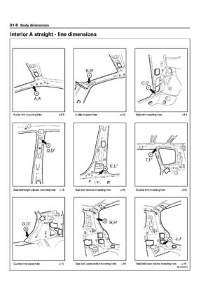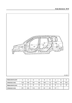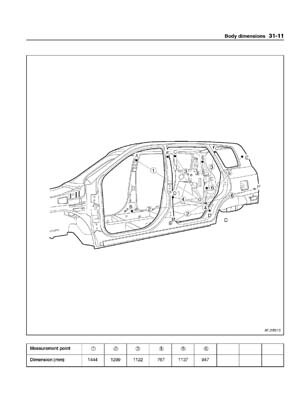 - Из заводского руководства по ремонту кузова Body Repair Manual, в том числе диагональные размеры проемов кузова и контрольные точки для восстановления геометрии.
