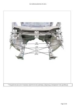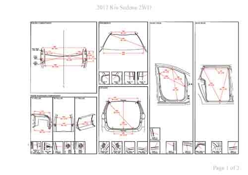 - Геометрические размеры кузова KIA Carnival/Sedona (YP) 2014-2021, как проекционные, так и непосредственного измерения, в том числе диагональные размеры проемов кузова и контрольные точки для восстановления геометрии кузова.