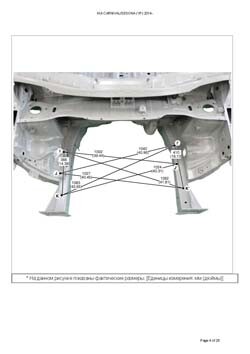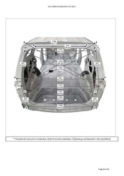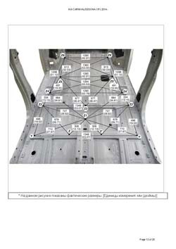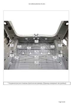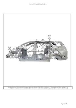 - Из заводского руководства по ремонту кузова KIA Carnival/Sedona (YP) 2014-2021, в том числе диагональные размеры проемов кузова и контрольные точки для восстановления геометрии. Дополнительно приведены допустимые значения зазоров кузовных панелей.