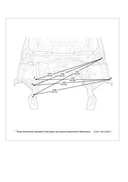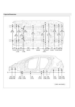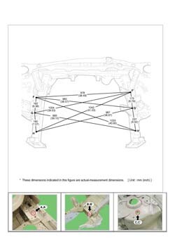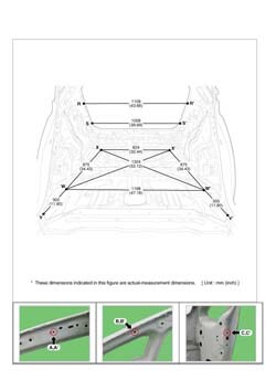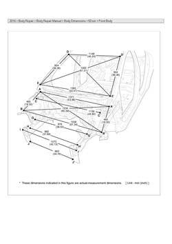 - Из заводского руководства по ремонту кузова Body Repair Manual, в том числе диагональные размеры проемов кузова и контрольные точки для восстановления геометрии. Дополнительно приведены допустимые значения зазоров кузовных панелей.