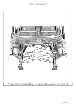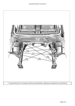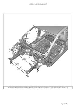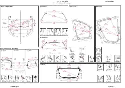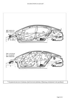 - Геометрические размеры кузова KIA Cerato/Forte (YD) 2012-2017, как проекционные, так и непосредственного измерения, в том числе диагональные размеры проемов кузова и контрольные точки для восстановления геометрии кузова.
