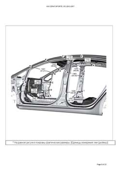 - Из заводского руководства по ремонту кузова KIA Cerato/Forte (YD) 2012-2017, в том числе диагональные размеры проемов кузова и контрольные точки для восстановления геометрии. Дополнительно приведены допустимые значения зазоров кузовных панелей.