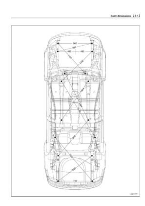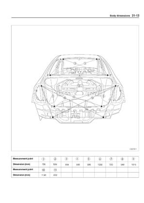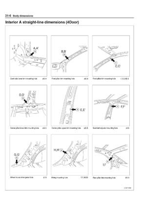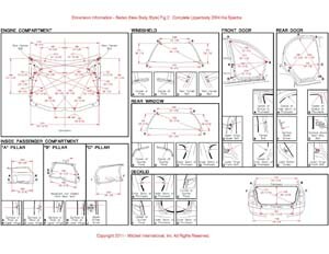 - Из заводского руководства по ремонту кузова KIA Cerato Body Repair Manual, в том числе диагональные размеры проемов кузова и контрольные точки для восстановления геометрии кузова Киа Церато.