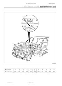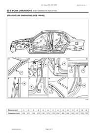 - Из заводского руководства по ремонту кузова Body Repair Manual, в том числе диагональные размеры проемов кузова и контрольные точки для восстановления геометрии.