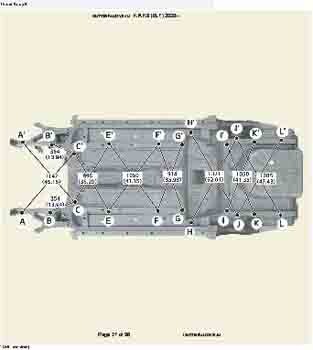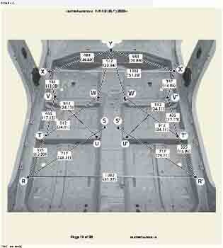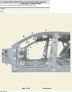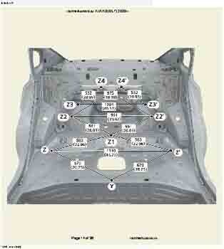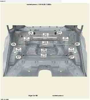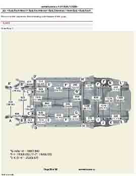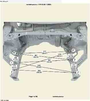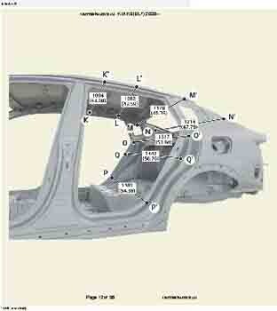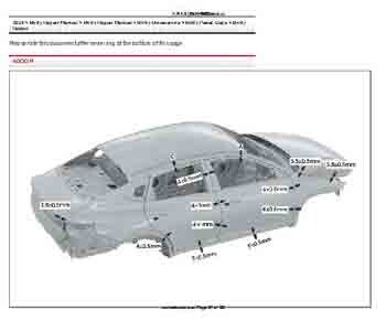 Контрольные кузовные размеры из заводского руководства по ремонту кузова KIA K3 (BL7) 2023--, в том числе диагональные размеры проемов кузова и контрольные точки для восстановления геометрии. Дополнительно приведены допустимые значения зазоров кузовных панелей.