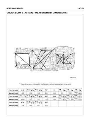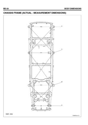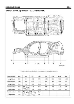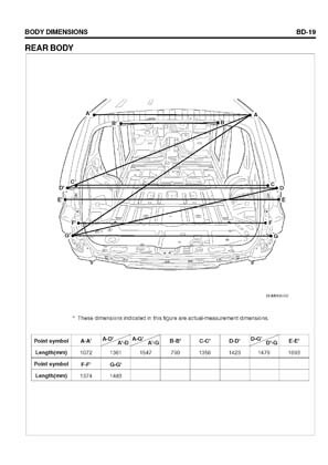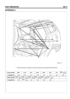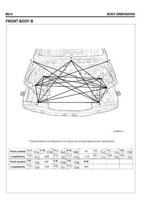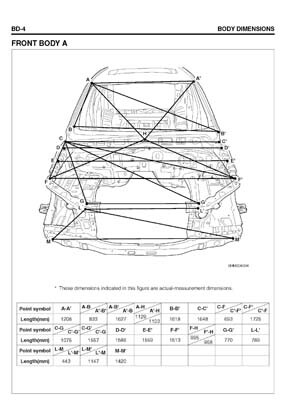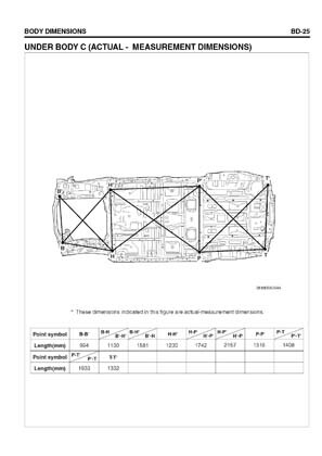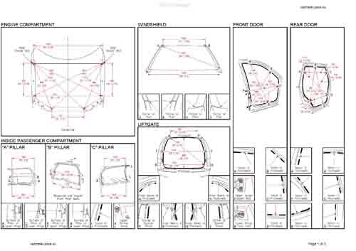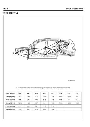 - Из заводского руководства по ремонту кузова Body Repair Manual, в том числе диагональные размеры проемов кузова и контрольные точки для восстановления геометрии.