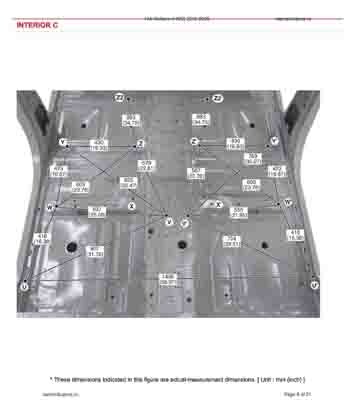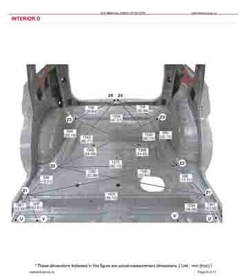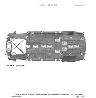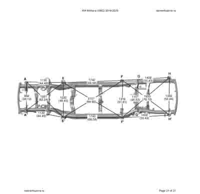 Контрольные кузовные размеры из официального руководства по ремонту кузова KIA Mohave (HM2) 2019-2025, в том числе диагональные размеры проемов кузова и контрольные точки для восстановления геометрии.