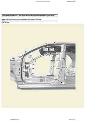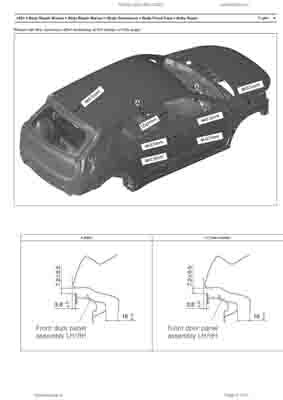 Контрольные кузовные размеры из официального руководства по ремонту кузова KIA Niro (SG2 HEV) 2022--, в том числе диагональные размеры проемов кузова и контрольные точки для восстановления геометрии. Дополнительно приведены допустимые значения зазоров кузовных панелей.