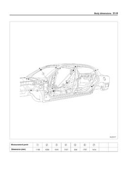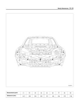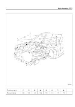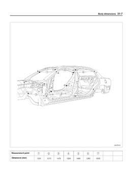 - Из заводского руководства по ремонту кузова Body Repair Manual, в том числе диагональные размеры проемов кузова и контрольные точки для восстановления геометрии.