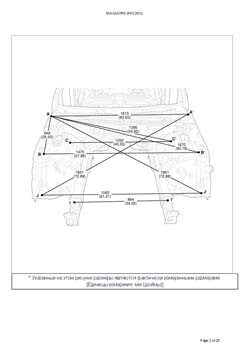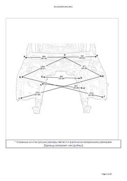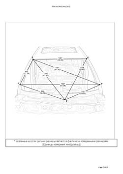 - Из заводского руководства по ремонту кузова Body Repair Manual, в том числе диагональные размеры проемов кузова и контрольные точки для восстановления геометрии. Дополнительно приведены допустимые значения зазоров кузовных панелей.