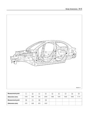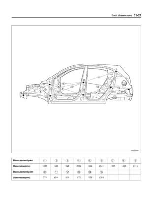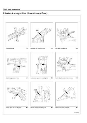 - Из заводского руководства по ремонту кузова KIA Rio Body Repair Manual, в том числе диагональные размеры проемов кузова и контрольные точки для восстановления геометрии кузова Киа Рио.