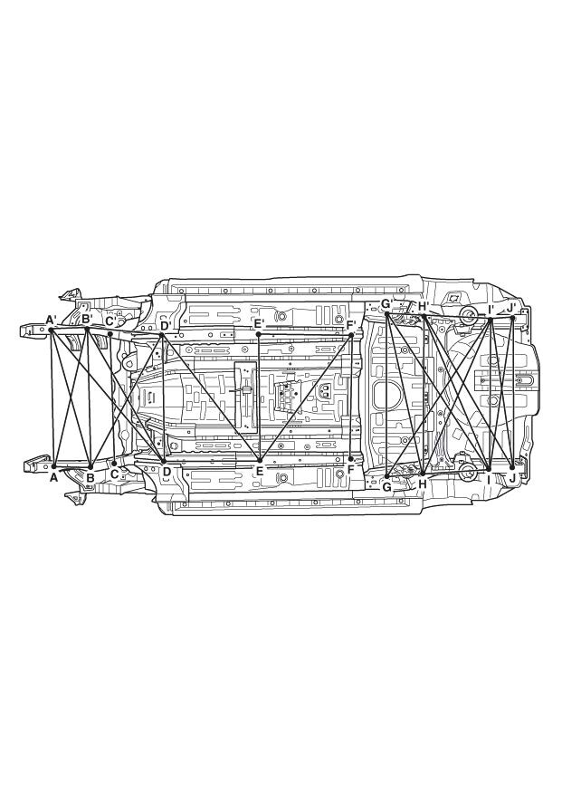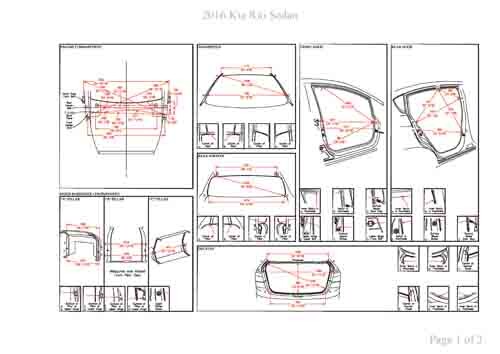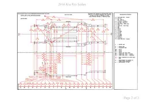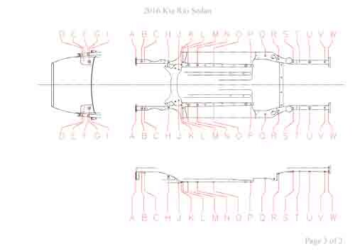 - Геометрические размеры кузова KIA Rio III (UB) 2011-2017, как проекционные, так и непосредственного измерения, в том числе диагональные размеры проемов кузова и контрольные точки для восстановления геометрии кузова.