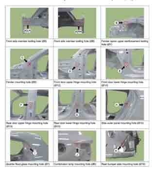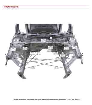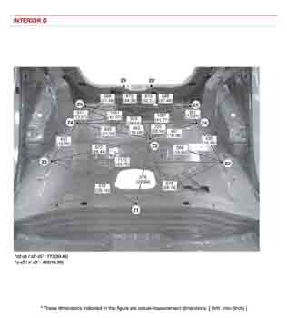 Контрольные кузовные размеры из заводского руководства по ремонту кузова KIA Rio IV (FB) RUS X-Line 2017-2023, в том числе диагональные размеры проемов кузова и контрольные точки для восстановления геометрии. Дополнительно приведены допустимые значения зазоров кузовных панелей.
