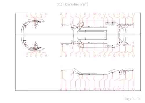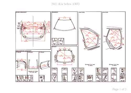 - Геометрические размеры кузова KIA Seltos 2019--, как проекционные, так и непосредственного измерения, в том числе диагональные размеры проемов кузова и контрольные точки для восстановления геометрии кузова.