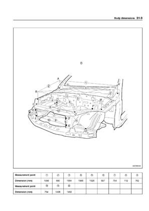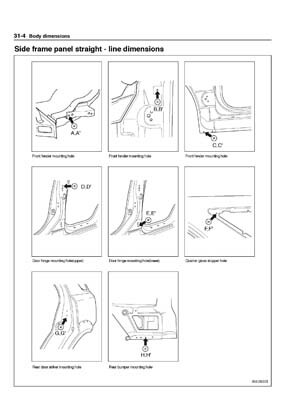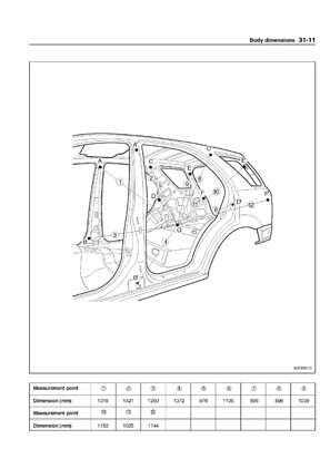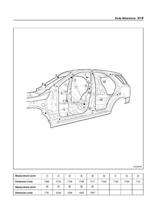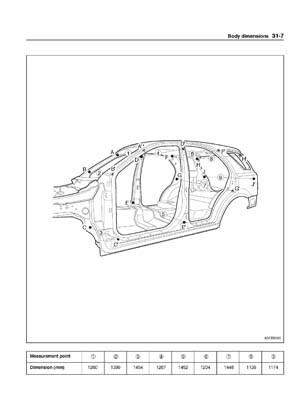 - Из заводского руководства по ремонту кузова KIA Sorento Body Repair Manual, в том числе диагональные размеры проемов кузова и контрольные точки для восстановления геометрии кузова Киа Соренто.