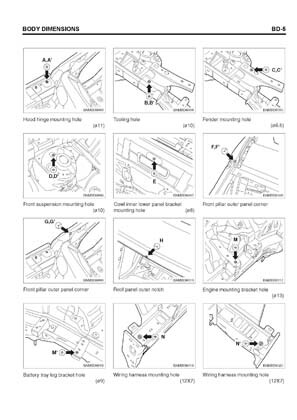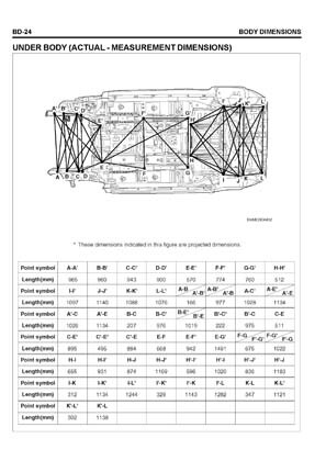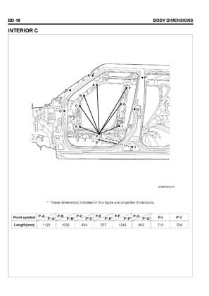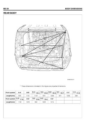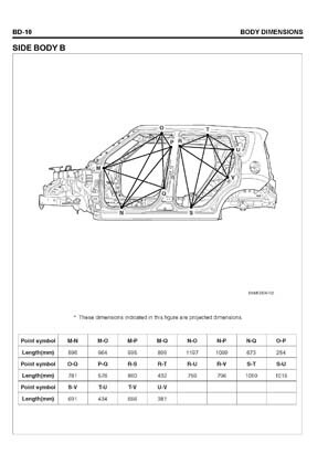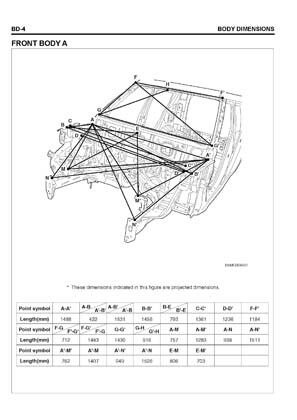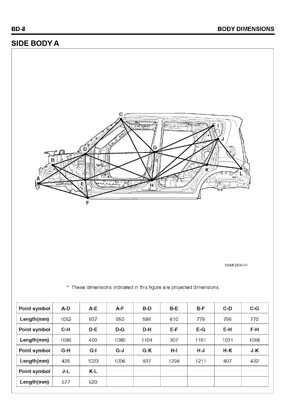 - Из заводского руководства по ремонту кузова Body Repair Manual, в том числе диагональные размеры проемов кузова и контрольные точки для восстановления геометрии.