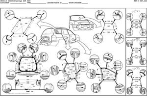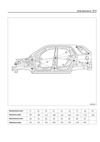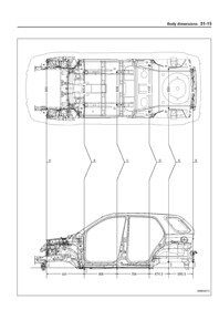 - Из заводского руководства по ремонту кузова KIA Sportage Body Repair Manual, в том числе диагональные размеры проемов кузова и контрольные точки для восстановления геометрии кузова Киа Спортэйдж.