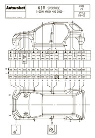- Геометрические размеры кузова KIA Sportage, как проекционные, так и непосредственного измерения, в том числе диагональные размеры проемов кузова и контрольные точки для восстановления геометрии кузова Киа Спортаж.